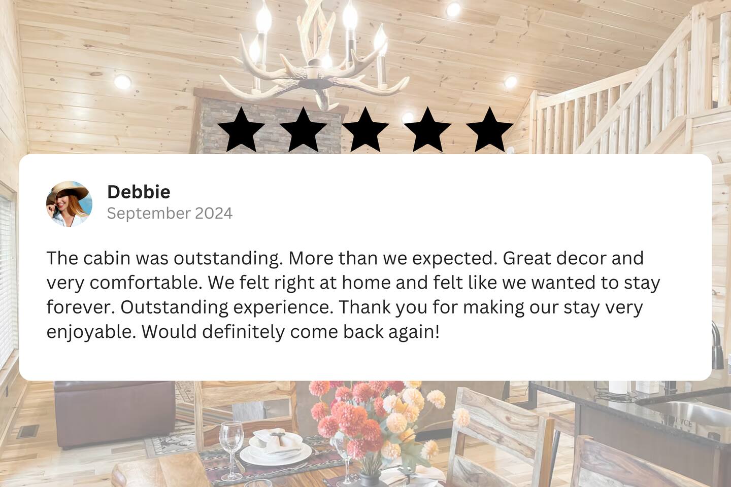 When families stay at Cedar Log Cabin, they love that this Gatlinburg cabin feels peaceful and tucked away in White Oak Resort yet is just 7 minutes to Great Smoky Mountains National Park and 12 minutes to downtown Gatlinburg for attractions, restaurants and family activities. Guests also rave about the game room, private hot tub, cozy fireplace and all the comforts and amenities that make their Smoky Mountains stay easy and relaxing. 🎯 Why Guests Love Cedar Log Cabin • 🎱 Game Loft with INFINITY GAME TABLE, which contains multiple electronic board games, Arcade & Pool Table. • 🌲 PRIVATE HOT TUB on a screened-in porch: bug-free bliss! • 🏊♂️ Access to resort pool (perfect for hot summer days), fire pit, Pickleball & more just steps away. • 🔥 Cozy stone fireplace • 🚗 No steep roads. Only 7 minutes to the National Park & 12 min to downtown Gatlinburg • 📶 Comfortable beds, Fast Wi-Fi, Smart TVs & streaming apps "This cabin was great! The location was just far enough outside the busy area to feel remote but still close enough to everything. We loved the game table upstairs and enjoyed that during our down time! The hot tub was great and the beds were comfy!" Stefanie, July 2025 🛋️ The cabin: Cozy, Spacious, Well-equipped This two-story Gatlinburg cabin offers warm wood interiors, modern comforts, and entertainment for all ages. The open concept living area features incredibly comfortable recliners, a stone fireplace, and natural light from large windows. Upstairs, the game loft keeps everyone entertained with a pool table, arcade games, and Infinity Game Table. Sleeping arrangements: • 🛏️ Bedroom 1: King bed (main level) • 🛏️ Bedroom 2: Queen bed (main level) • 🛋️ Loft: 2 twin beds Both bedrooms on main level have en suite bathrooms and, through these bathrooms, are private entrances to the back porch area where the hot tub is waiting for you. Both bedrooms are also equipped with smart TVs. 🎮 Game Loft Paradise: Pool, Arcade & Infinity Fun Upstairs, you’ll find a full entertainment loft that guests love: • 🎱 Pool table • 🕹️ Classic arcade console • 🎲 Infinity Game Table with multiple digital board games including your most famous board games for countless hours of family entertainment. • 📺 Wall-mounted smart TV It’s a fun, open space perfect for families or friendly competition! 🛁 Outdoor relaxation: Hot Tub + screened Porch Soak your cares away in the private hot tub tucked on a covered deck, surrounded by trees for a peaceful, spa-like setting. Our screened in back porch lets you enjoy the fresh air without the bugs. Relax with morning coffee or evening drinks on the: • 🪑 Front porch with rocking chairs • 🌄 Back deck or upper deck with forest views Porch time is a Smoky Mountain must — and this cabin delivers. 🍳 Kitchen: Fully Stocked for family meals Whether you’re cooking breakfast or a full family dinner, the cabin’s kitchen includes: • 🥘 Stainless appliances (fridge, stove, microwave, dishwasher) • ☕ Coffee maker, French press, Keurig, toaster, blender, waffle maker, cookware • 🍽️ Dishware, glasses & utensils Dine at the rustic table indoors or bring meals outside to the back porch. 🌄 Resort Amenities + Outdoor Perks The whole family will love the White Oak Resort. The salt-water pool, belovedly called Joon’s Lagoon, is great for little ones and adults alike and is only a short stroll away from our cabin. There are also Pickleball, tennis and basketball courts, a fitness center, BBQ grills (one just 100 meters from the house), a communal fire pit, and private walking trails. The area is designed for family vacations and is the perfect mix of quiet and lively. "We had one of the best Air BnB stays. The cabin was even better than pictures, kitchen had all the things to cook for my party of 6. Grandkids loved the playroom that had this super cool gaming pad and the whole family was able to Sit around and play games. Hot tub was clean and private. The cabin backs up to a wooded area so you could hear the birds while you relaxed on not one but 2 private patios in the back. The pool was big at the club house and not crowded as the resort does not have too many houses. We drove to trails, gatlinburg down town and pigion forge. It was a great 6 day trip. I would say it was quite for people w or wo kids. Grounds were kept extremely clean. Cabin was a 10/10 👌🏻❤️😃". Courtney, June 2025